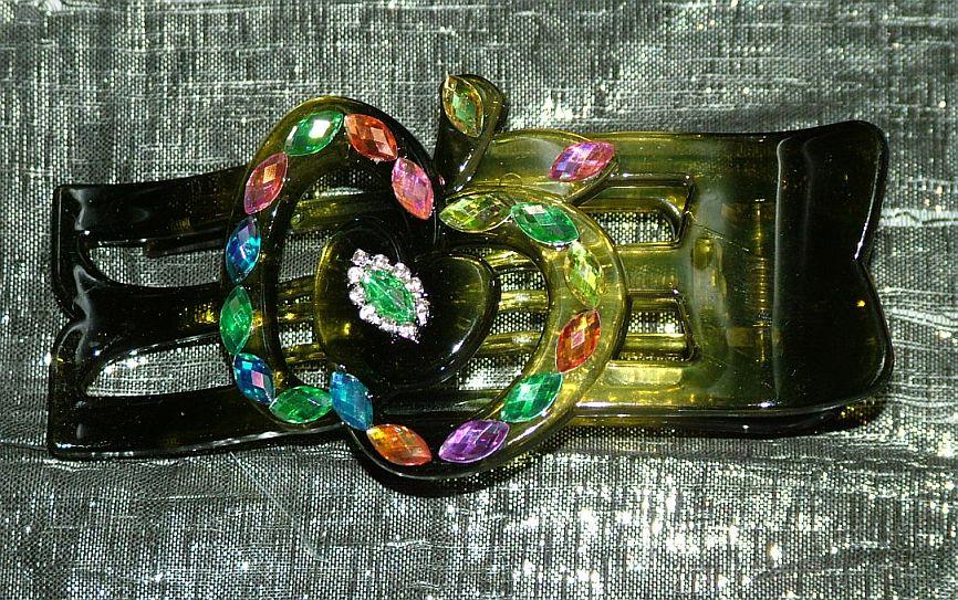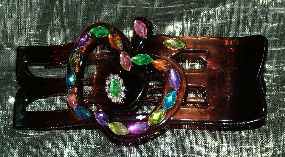 Fun n Fancy Jewelled Candy-Look Updo or Sexy Pinup Clips .....smooth flat, and won't catch on things. Putting Medium to very Long hair all up securely. Leaves few marcations when removed. For fine through medium thick hair. Sexy n sturdy. Allows by styles twisting hair softly. Easily and clips in, up n done! Yes, twist in a Q and clip...up in one Swoop! Right handed or Ambidextrous. Head-rest comfy, and more subtle than you'd think! (just don't drop it on granite floors:)